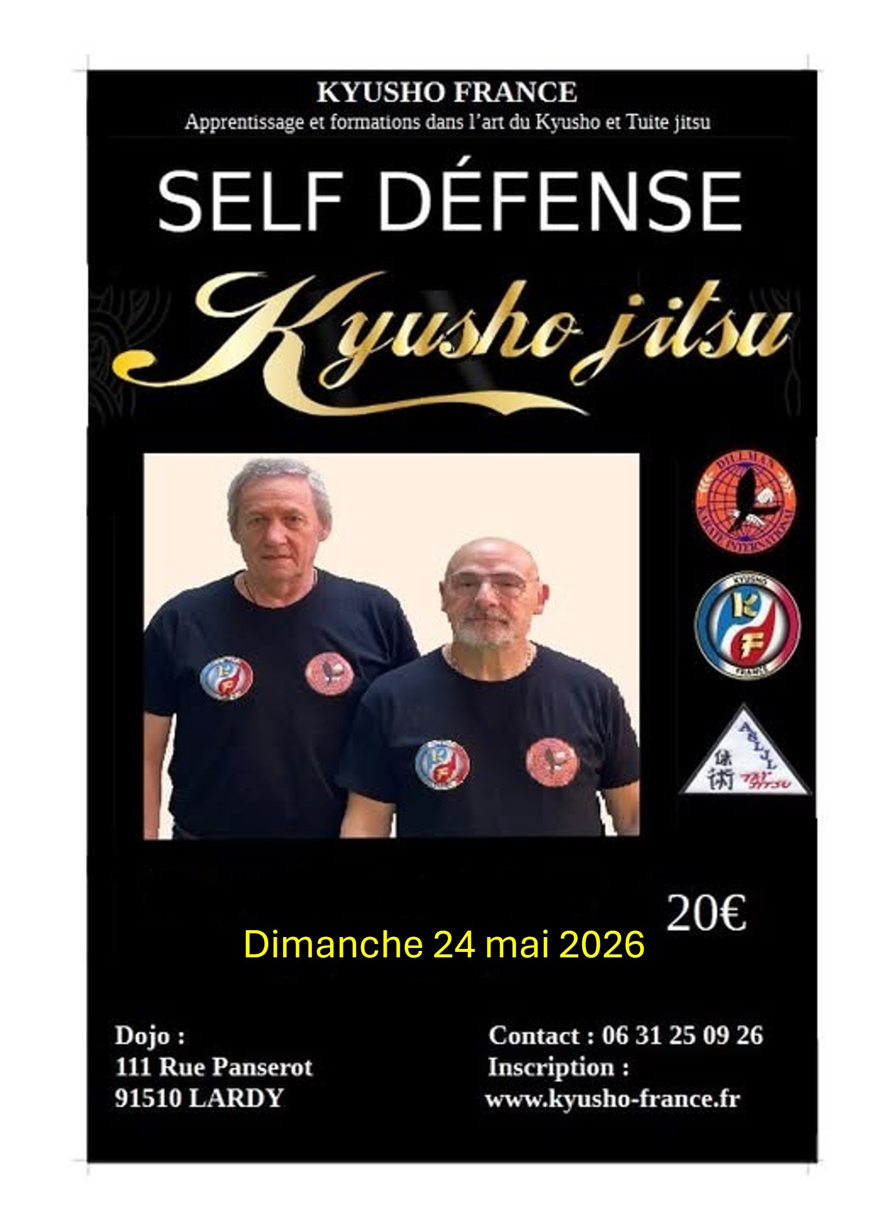 KF D.K.I LARDY : Stage Self/Kyusho DKI dimanche 15 mars 26 Stage Self/Kyusho Stage Self Kyusho D.K.I Partenariat avec Club Tai-jitsu LARDY Dimanche 15 mars 2026 de 9h/13h En savoir plus